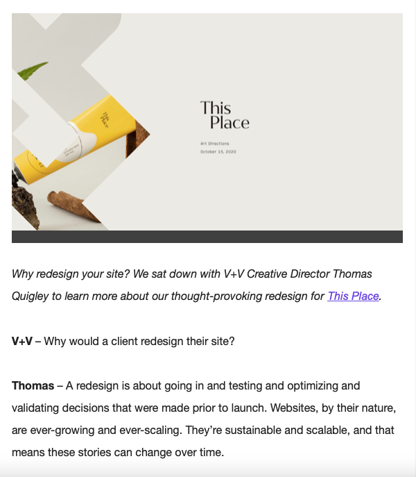 By featuring an interview with our Director of Design, I was able to position the announcement in a way that increased opens and bolstered engagement.