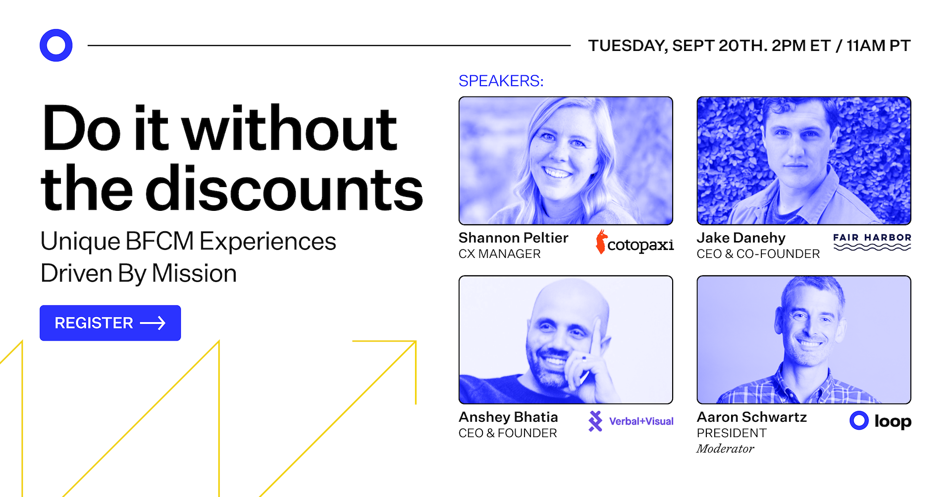 Mission-driven swimwear brand Fair Harbor and outdoor apparel trendsetter Cotopaxi were dream clients of Verbal+Visual. I delivered an opportunity to connect to both with this webinar on driving BFCM conversion with mission-focused incentives.